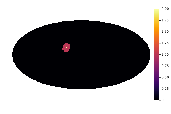 m[ang2pix(m, theta, phi)] = 2 # Highlight the pixel at the center